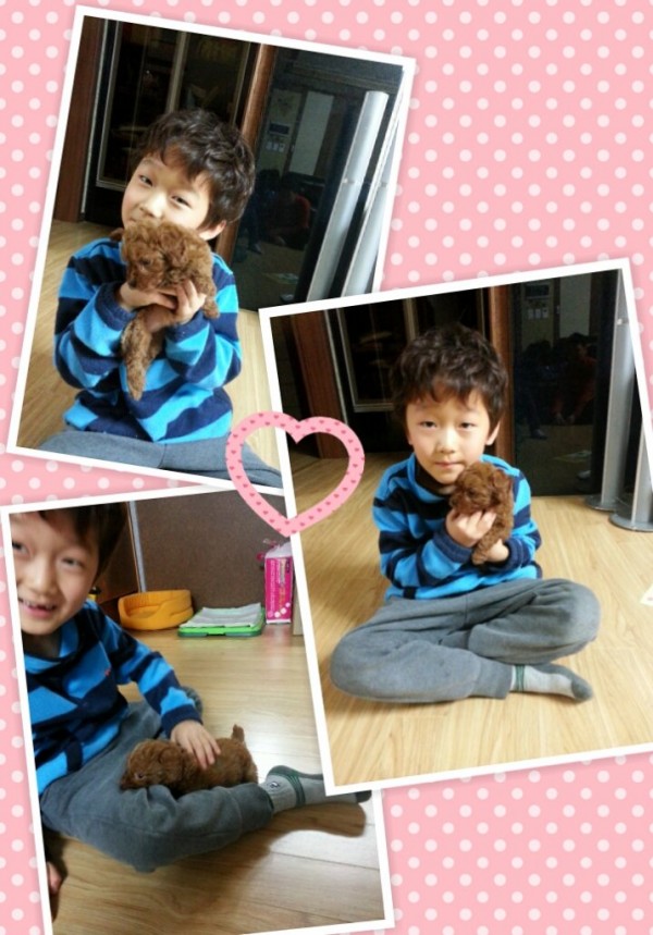 토이 푸들 몽이예요. 사진으로만 얼굴을 보고 받으려니 내심걱정도 많았는데 예쁜아기가 왔어요. 따뜻하게 핫팩해서 잘 보내주셨구요. 아들 혼자 심심해서 몽이를 데려왔는데 신랑이 더 좋아라하네요. 아직 애기가 어려서 배변훈련은 시간을 두고 해야할것 같아요 예쁜아기 감사합니다^^